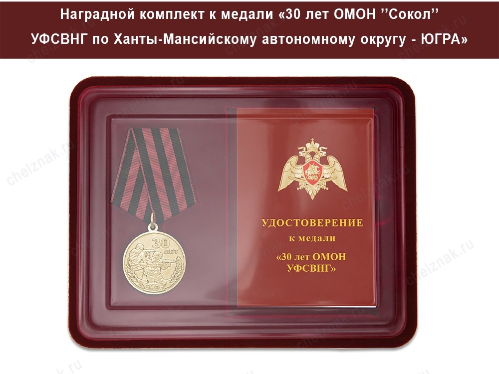 В целях повышения значимости службы в Росгвардии, морального поощрения сотрудников, ветеранов, а также гражданских лиц Федеральной службы войск национальной гвардии Российской Федерации, в ознаменование 30-летия со дня образования Нижневартовского ОМОНа, выпущена юбилейная медаль «30 лет ОМОН "Сокол" Росгвардии по Ханты-Мансийскому автономному округу - ЮГРА». Медаль доступна для заказа в двух вариантах: на пятиугольной колодке, на квадроколодке "Ветеран".