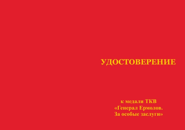 Медаль ТКВ «Генерал Ермолов. За особые заслуги» с бланком удостоверения арт. 1407