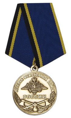 Медаль изготовлена из латуни. Основу медали составляет круг с узким выпуклым рантом по периметру диаметром 32 мм. На лицевой стороне медали изображен герб ВС России, под которым видна эмблема Инженерных войск — скрещенные топорики, украшенные лавровым венком. Сверху нанесена надпись «ВЕТЕРАН ИНЖЕНЕРНЫХ ВОЙСК», а под эмблемой слово «РОССИИ». Оборотную сторону занимает изображение пятиконечной звезды, обрамлённое схематическим фортификационным сооружением.
