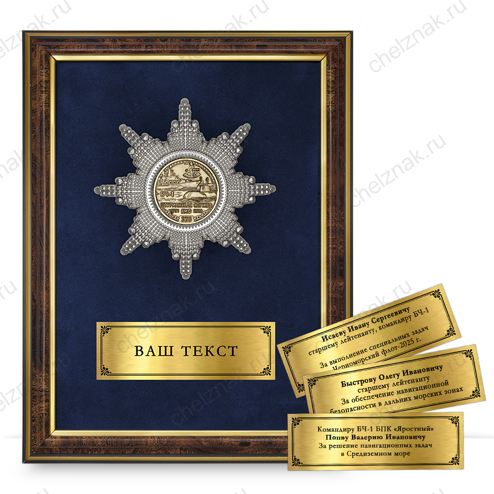 Продукция изготавливается под заказ по 100% предоплате. Возможно нанесение текста заказчика методом гравировки на шильд и/или орден. При необходимости, текст укажите в поле "Текст". Срок изготовления 2 - 3 рабочих дня.