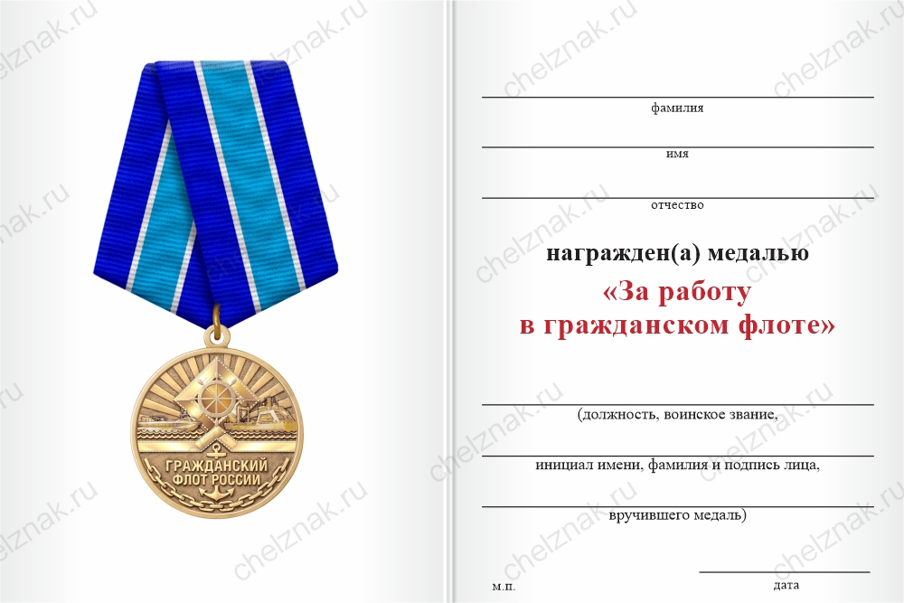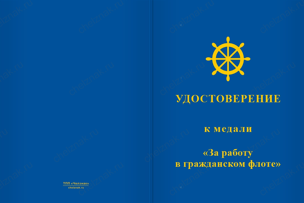 Медаль «За работу в гражданском флоте» с бланком удостоверения арт. 21701
