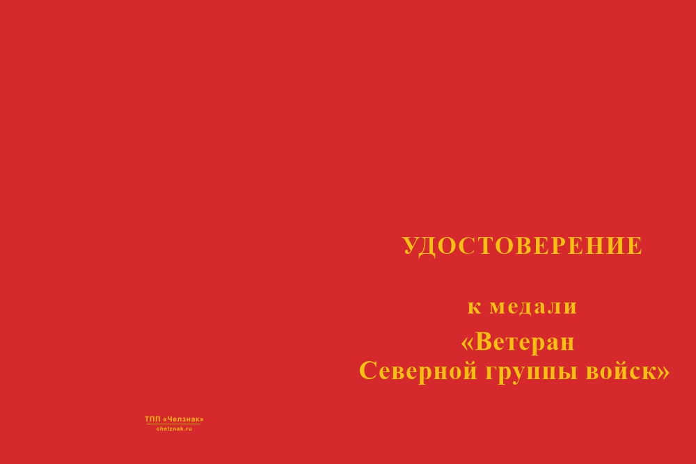 Медаль «Ветеран Северной группы войск» с бланком удостоверения арт. 21254