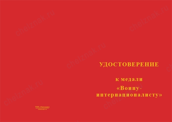 Медаль «Воину-интернационалисту» с бланком удостоверения арт. 2554
