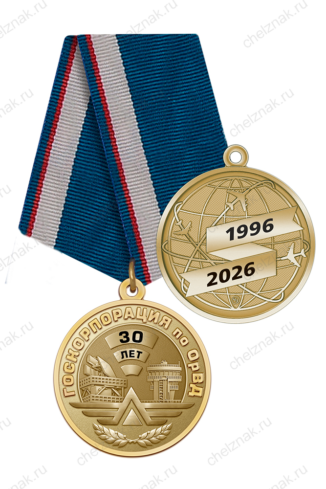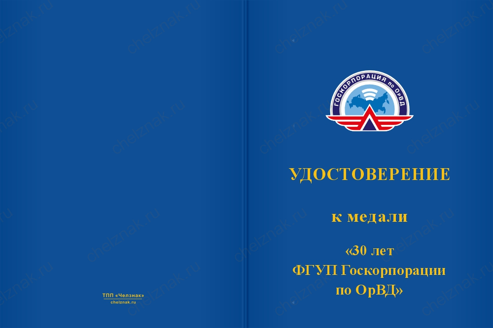 Медаль «30 лет ФГУП "Госкорпорация по ОрВД"» с бланком удостоверения арт. 130858