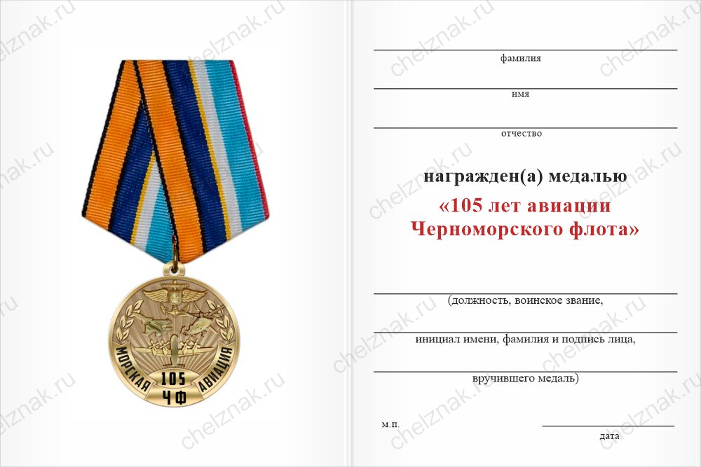 Чистые бланки удостоверения идут в комплекте с изделием, если об этом указано в названии (например, медаль «100 лет ВВС» с бланком удостоверения).