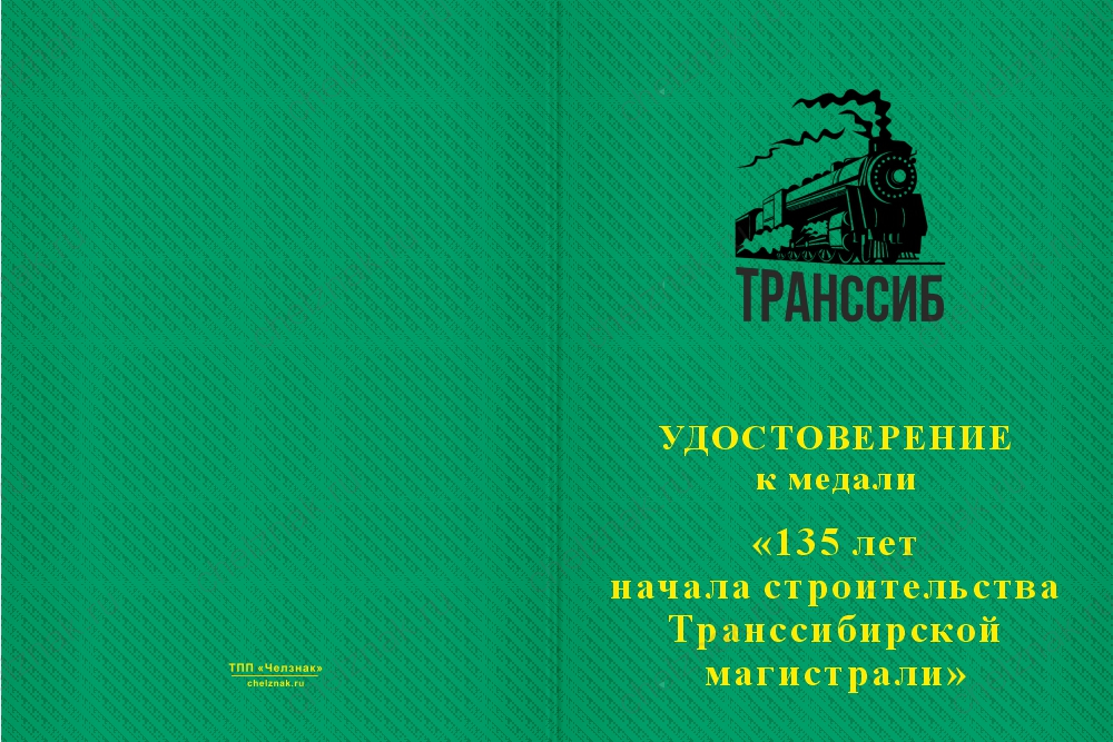 Медаль «135 лет Транссибу» с бланком удостоверения арт. 35500