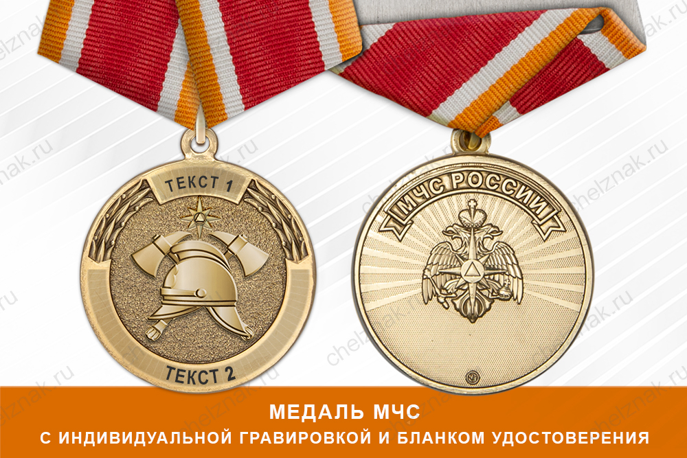 Вы можете заказать медаль с индивидуальной надписью на аверсе. Надпись будет выполнена с применением технологии лазерной гравировки. Медаль изготовлена методом штамповки. На аверсе в центре расположена эмблема Пожарной охраны. По окружности медали снизу и сверху проходит лента, предназначенная для нанесения надписей. Слева и справа ленты замыкают лавровые ветви.