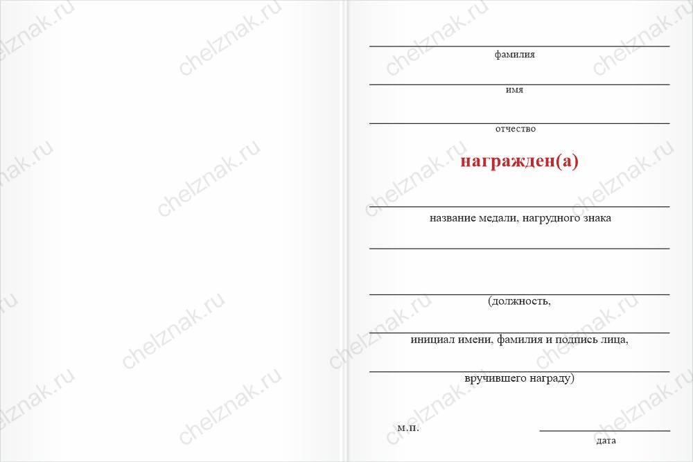 Если про наличие удостоверения не указано, в разделе Бланки удостоверений Вы можете приобрести типовой бланк без изображения награды.