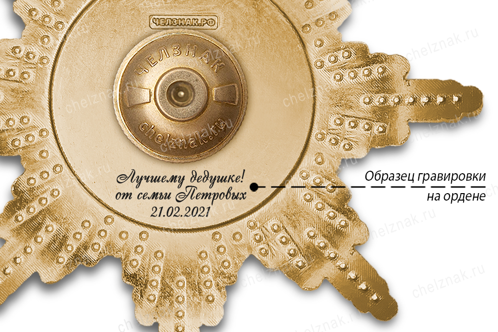 Дополнительно Вы можете воспользоваться услугой нанесения гравировки на тыльной стороне ордена либо на шильде.