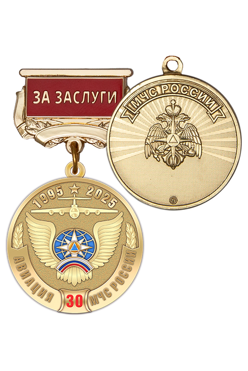 Медаль «30 лет авиации МЧС России. За заслуги» с бланком удостоверения арт. 130370
