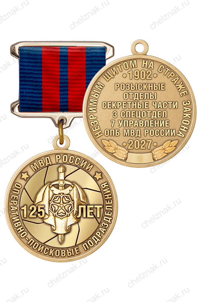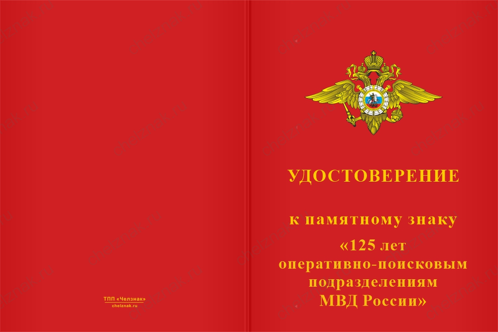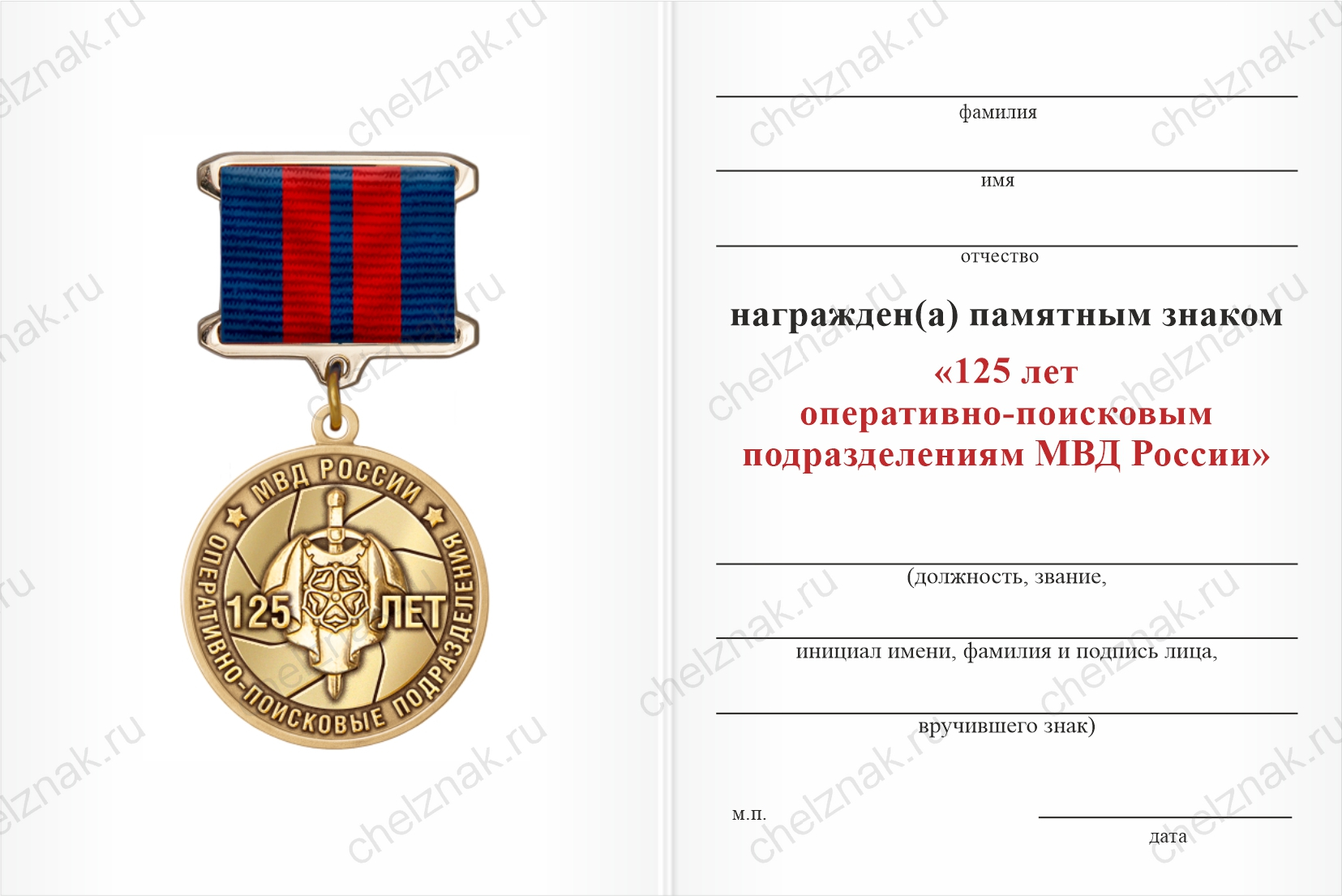Памятный знак «125 лет Оперативно-поисковым подразделениям МВД России» с бланком удостоверения арт. 21382