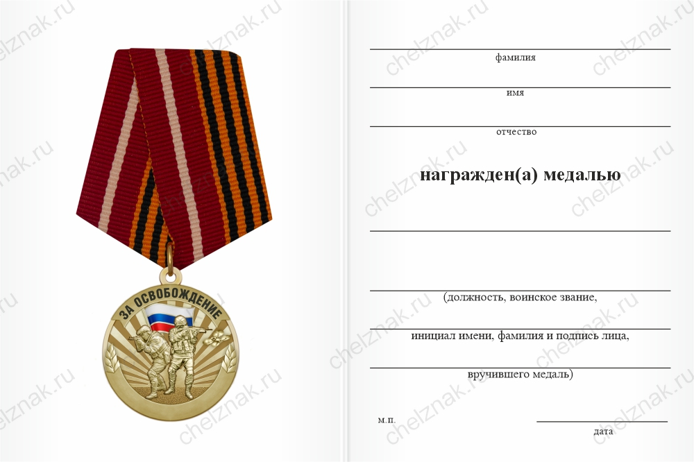 Медаль «За освобождение Угледара» с бланком удостоверения арт. 23712