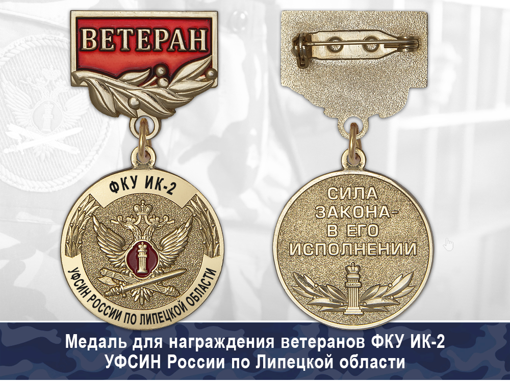 Вы можете заказать медали с индивидуальной надписью на аверсе предназначенную для награждения сотрудников и ветеранов ФКУ ИК-2 УФСИН России по Липецкой области, а также гражданских лиц. Также изготовим юбилейные медали ко дню образования исправительного учреждения. Надписи выполнены с применением технологии лазерной гравировки. При необходимости, возможно изготовление по индивидуальному заказу.