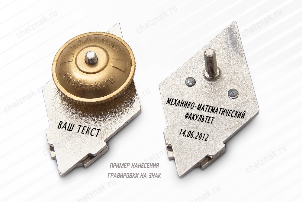 На реверс знака возможно нанесение индивидуальной надписи гравировкой. Для этого впишите ваш текст в соответствующее поле. Стоимость услуги — 350 рублей. Срок изготовления 1-2 рабочих дня.